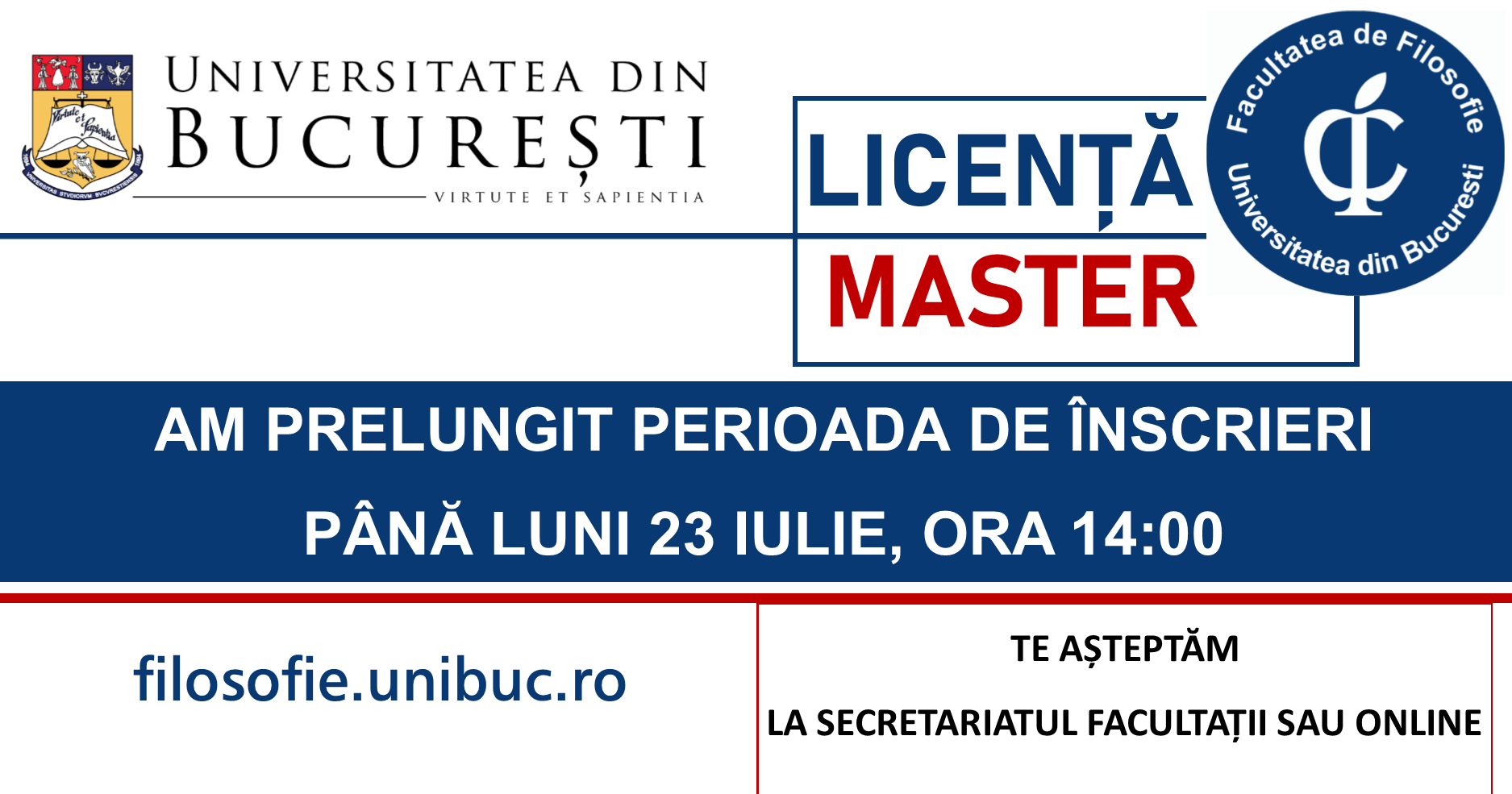 Toate informațiile referitoare la procesul de admitere sunt disponibile la următoarea adresă: http://filosofie.unibuc.ro/conversie-profesionala-professional-conversion/