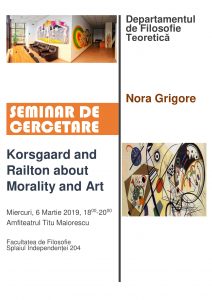 Miercuri, 6 martie, în cadrul Seminarului de cercetare al Departamentului de Filosofie Teoretică, Dr. Nora Grigore va susţine prezentarea intitulată „Korsgaard and Railton about Morality and Art”.